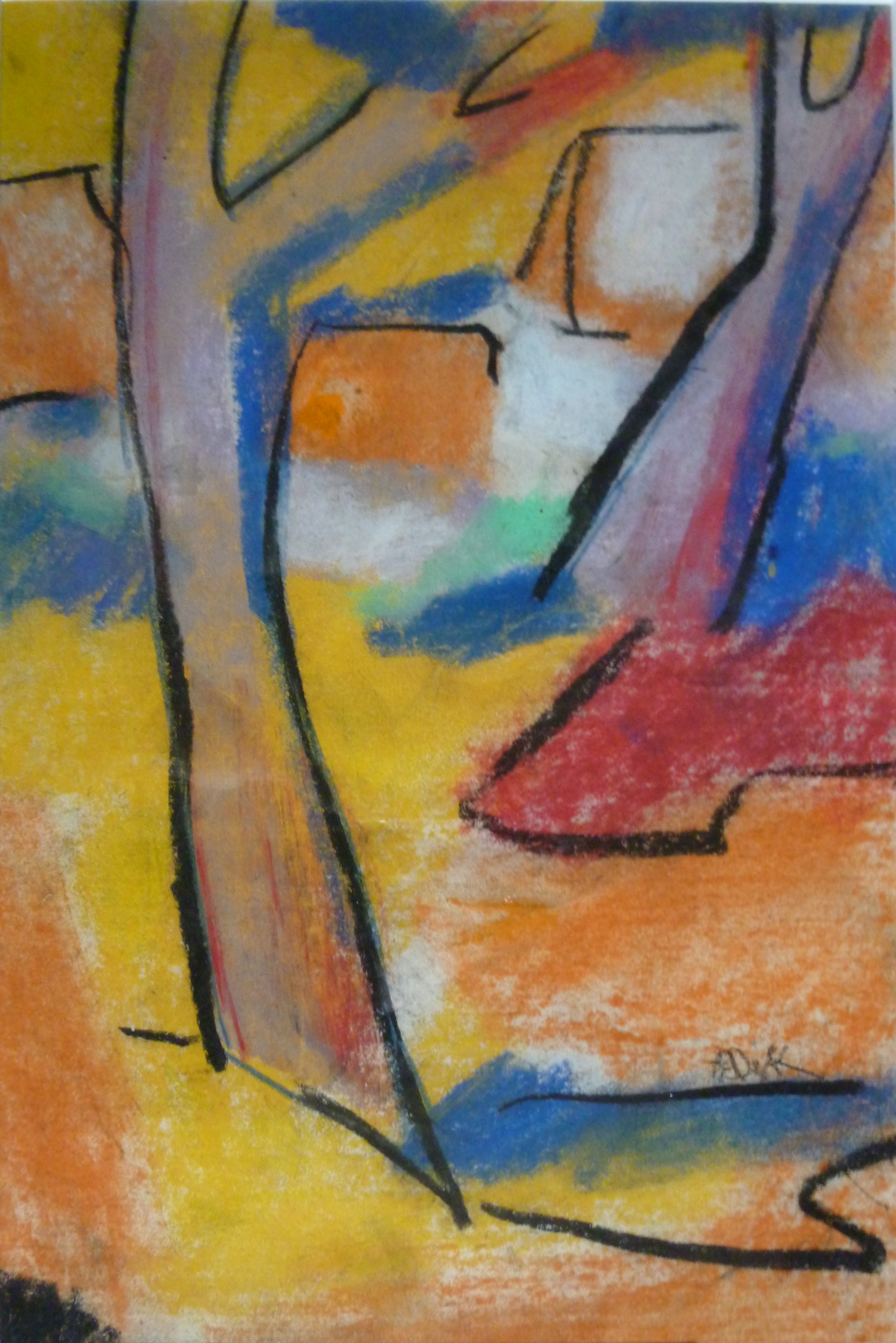 bäume am ortseingang pastell 40x30cm arbres a l’entree du village pastel
