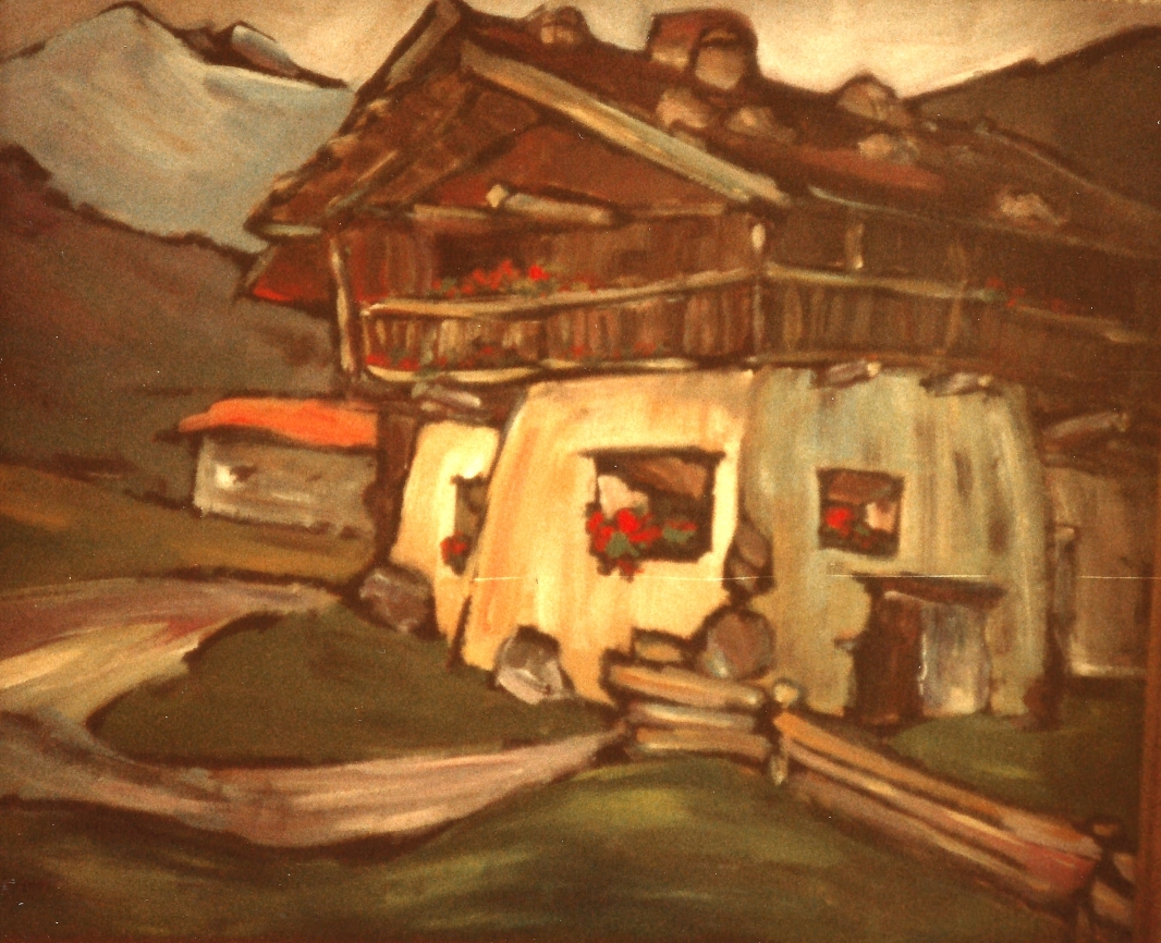 bauernhaus s dtirol, acryl lwd 60x60cm,ferme tirol de sud, huile sur toile
