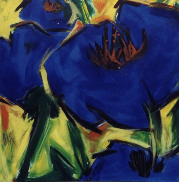 blaue blüten öl/lwd 100x100cm fleurs bleues huile/toile