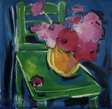 blumenstrauss auf grünem stuhl huile/toile 60x60cm bouquet sur chaise verte huile/toile