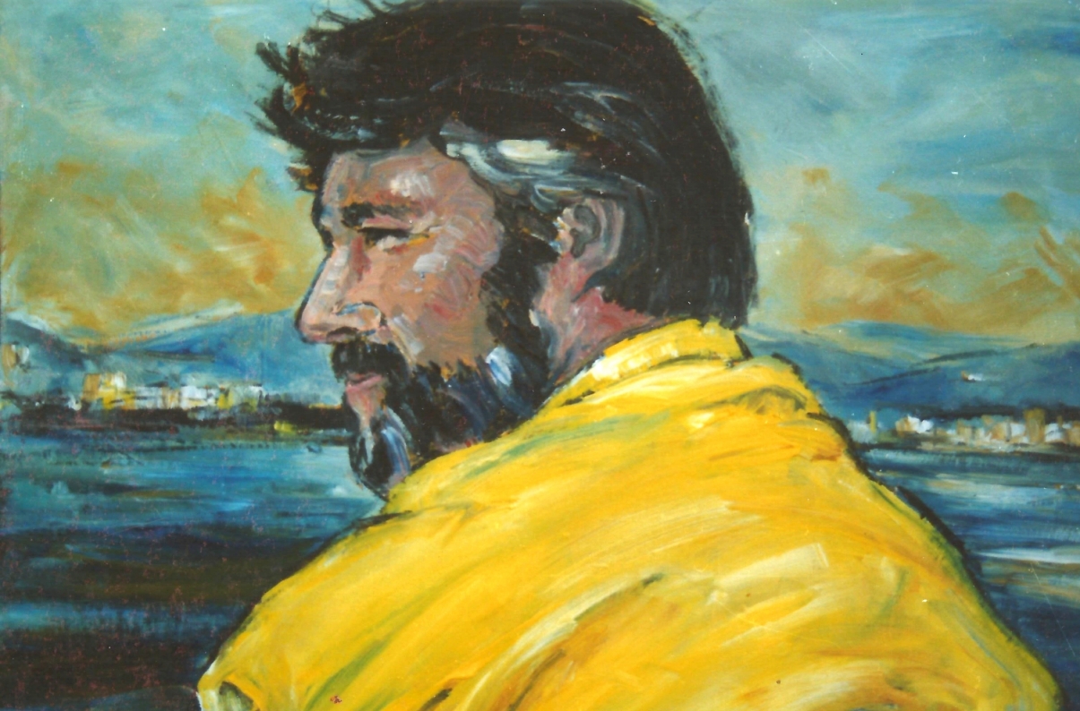chacha auf der berfahrt nach mallorca, acryl lwd, 60x50cm, chacha au transfer vers mallorque, huile sur toile