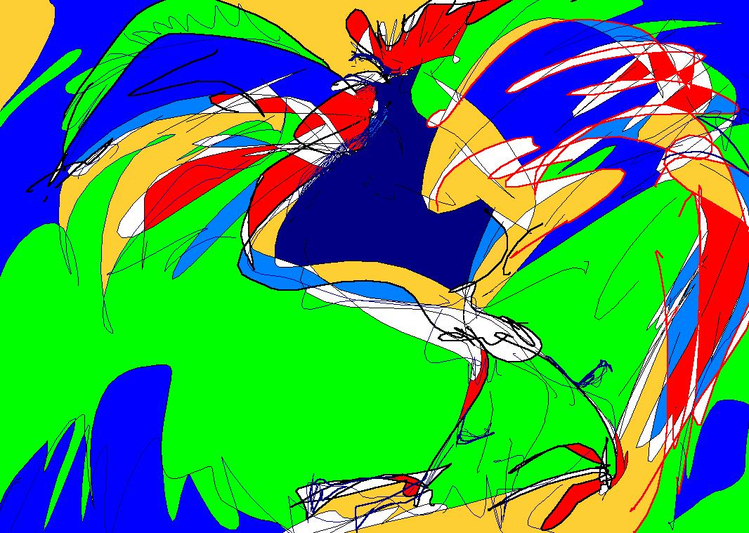 hahn auf gruen komputerbild 60x50cm coq sur vert peint dans l’ordinateur