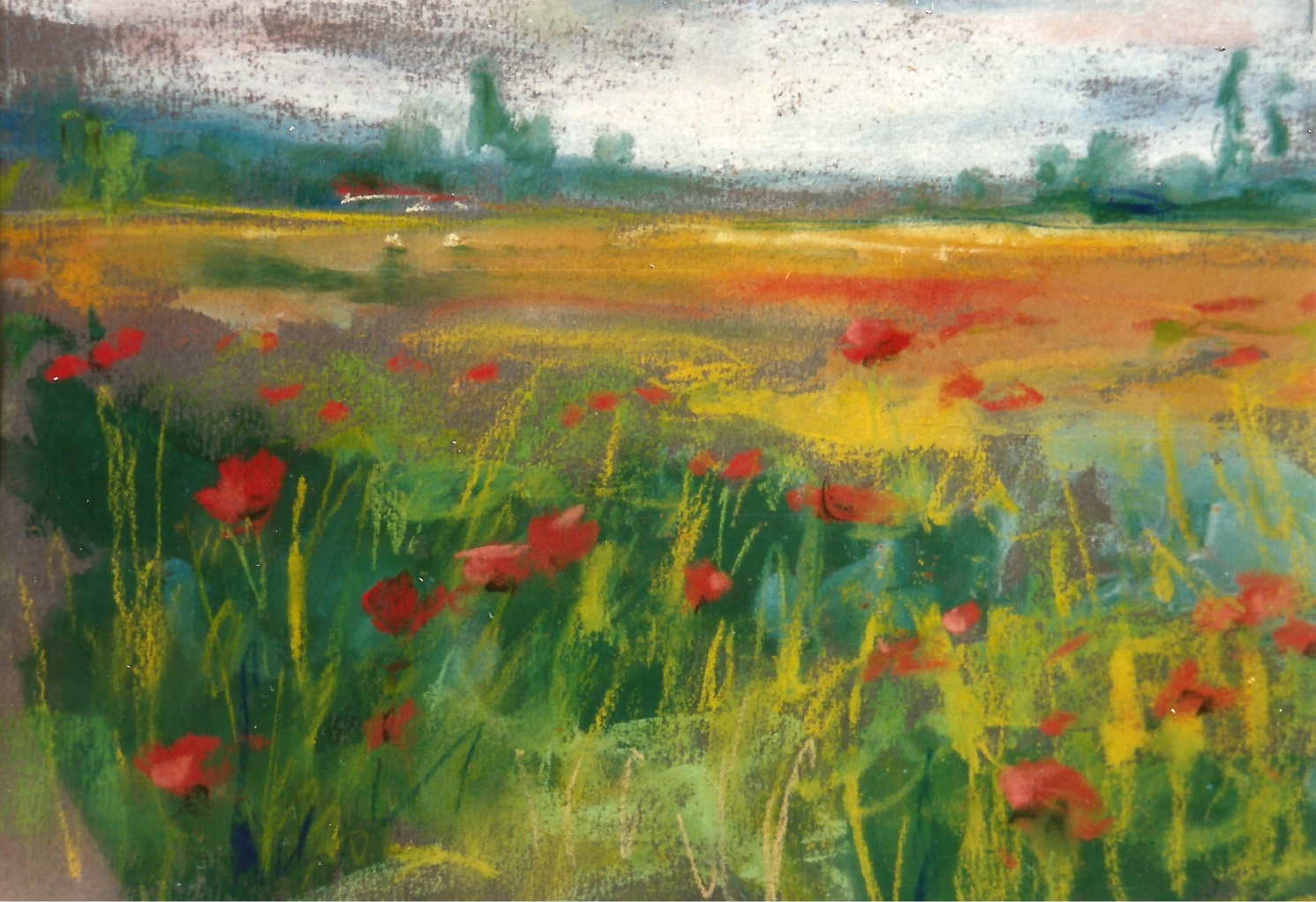 mohnfeld bei priay, pastell, 40x30cm, pré de coquelicots vers priay