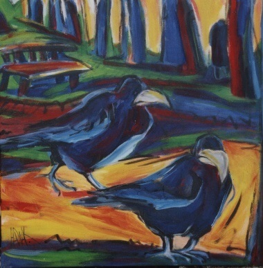 nicht viel los heute… acryl/lwd 60x60cm deux qui s’ennuyent acrylique/toile