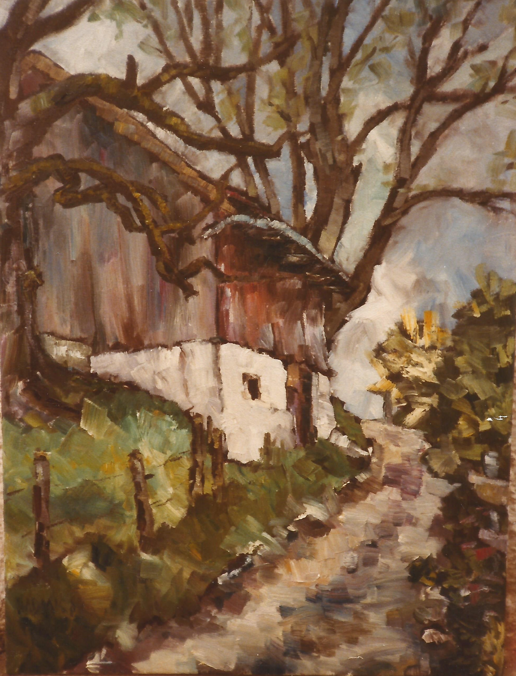 Scheune in prem, öl lwd, 80x60cm, grange à prem